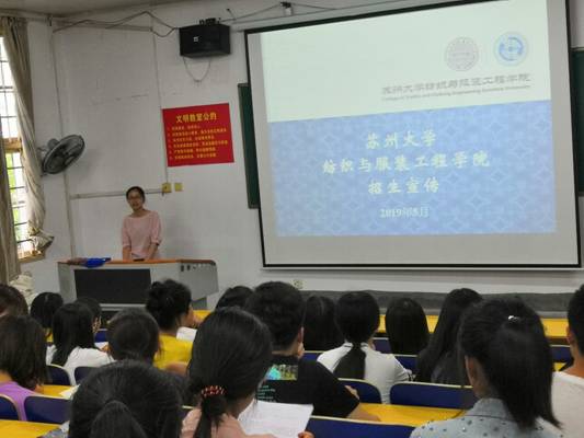 次日13:00在电教101教室,苏州大学纺织与服装工程公司进行了研究生招生工作宣讲会,戴细春从科研论文发表、专利申请以及科研项目等几个方面给有志报考研究生的员工全面介绍了苏州大学纺织与服装工程公司研究生院的实力,并欢迎与鼓励纺织工程、服装与服饰专业、轻化工程员工报考。同时,针对员工在初试以及复试中常见的问题给出了建设性意见,会后还有不少员工提出了个性化问题,戴细春都进行了细致答疑。