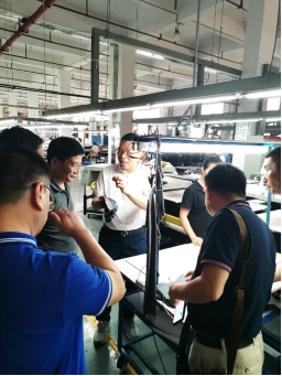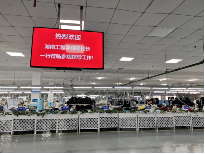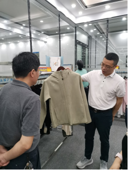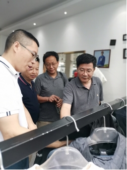 会后,刘总向易兵董事长一行展示了企业各种各样的服装产品,并详细介绍了一些服装的特色、功能、代工贴牌服装的价格,并通过讲解贴牌产品的附加值来说明服装品牌的重要性。然后,刘总引领易兵董事长一行参观了印染车间、实验室、调度控制室、智能化车缝车间和熨烫车间。其间,双方对企业的生产技术、设备、产品、管理等方面做了进一步的交流,共同希望校企双方能够深入开展产学研合作,帮助企业解决难题。