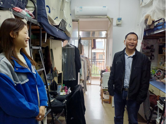 “同学们在学习生活中有没有什么困难?”“同学们晚上休息前是不是都按掉了插板按钮?”“我们宿舍有没有很好地执行宿舍卫生值日制度?”每到一间宿舍,魏克湘都与宿舍同学进行亲切交流,详细了解同学们的学习情况、宿舍卫生和用电安全等生活习惯,反复叮嘱同学们要珍惜“四年室友”这份难得的缘分,互相关心、互相包容,共同创造一个温馨舒适的宿舍环境。同学们对魏克湘副董事长的暖心走访表示深深的感谢,纷纷表示将努力保持良好的卫生习惯,时刻紧绷安全用电这根弦,为建设文明、和谐的优秀宿舍而不断努力。