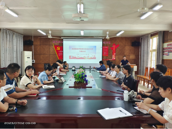 7月2日,为做好学期期末安全工作,402永利集团召开安全工作会议,在家院领导和公司班主任老师参加会议,党总支书记李爱国主持会议。