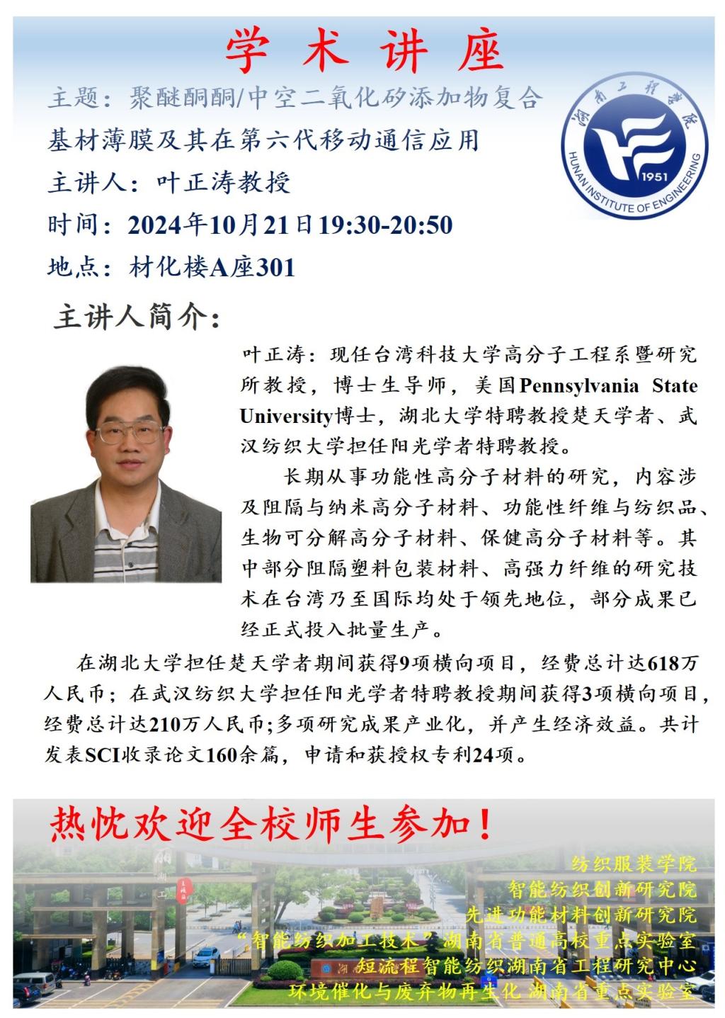 【学术讲座】聚醚酮酮/中空二氧化矽添加物复合基材薄膜及其在第六代移动通信应用