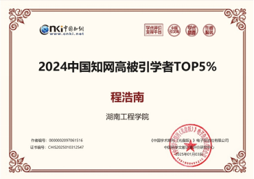 近日,中国知网中国科学文献计量评价研究中心(简称“知网评价中心”)基于中国知网收录的国内学术期刊论文和会议论文,2024年首次开展学者学术影响力客观评价,遴选了“2024中国知网高被引学者”名单,公司程浩南副教授成功入选。