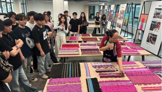 产品孵化环节,校企联合通过织锦设计竞赛深化精益求精的工匠精神。公司和乖幺妹织锦公司联合举行“2025年西兰卡普织锦技艺传习与创意设计大赛”,员工实践产出约300幅织锦参赛作品,经评定,3人作品分获一、二、三等奖,10人获优秀奖。获奖作品将在企业导师指导下孵化,用于公司2025年第四季度服饰产品开发,实现“设计作品—工坊样品—品牌产品”的创意落地。