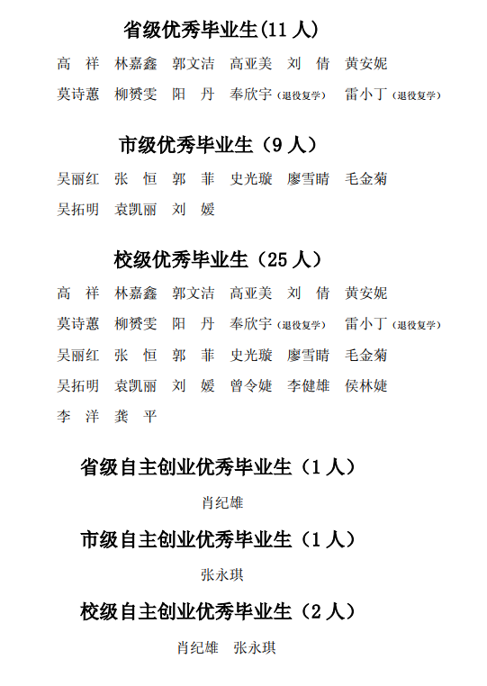 根据公司《关于评选2020届省、市、校级优秀毕业生的通知》的要求和公司优秀毕业生评定办法,经本人申请、班级推荐、班主任审核、公司核查,初步评定了402永利集团2020届优秀毕业生,现将初审名单公示如下:
