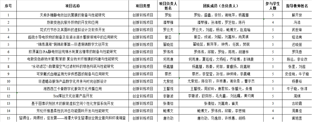 附表:2024年402永利集团老员工创新创业训练计划项目参加校赛名单