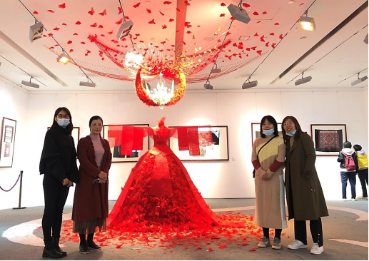 10月8日,服装与服饰教研室部分老师集体赴长沙,参加由湖南省设计艺术家协会牵头策划组织,并联动湖南省各个艺术委员会、高校、天闻地铁传媒协作发起2020长沙首届设计艺术周活动。“穿在身上的史书—苗衣绣艺”艺术作品展,首先在长沙IFS L7艺术画廊全面启动,为教研室老师提供了一次很好的学习与交流的机会。此次苗衣绣艺艺术作品展,展出了晓青艺美服饰有限公司董事长包银清女士与湖南艺术职业公司美术系周朝晖教授联手打造的16件珍藏苗服苗绣,展览集装置、灯光、音乐等多种艺术表现形式,由“寻源·蝶”、“绝色·红”、“传世·绣”三个板块组成,从苗族历史、苗族文化、苗族信仰等多个维度,充分展现了中国苗族艺术的精神性和独特性。