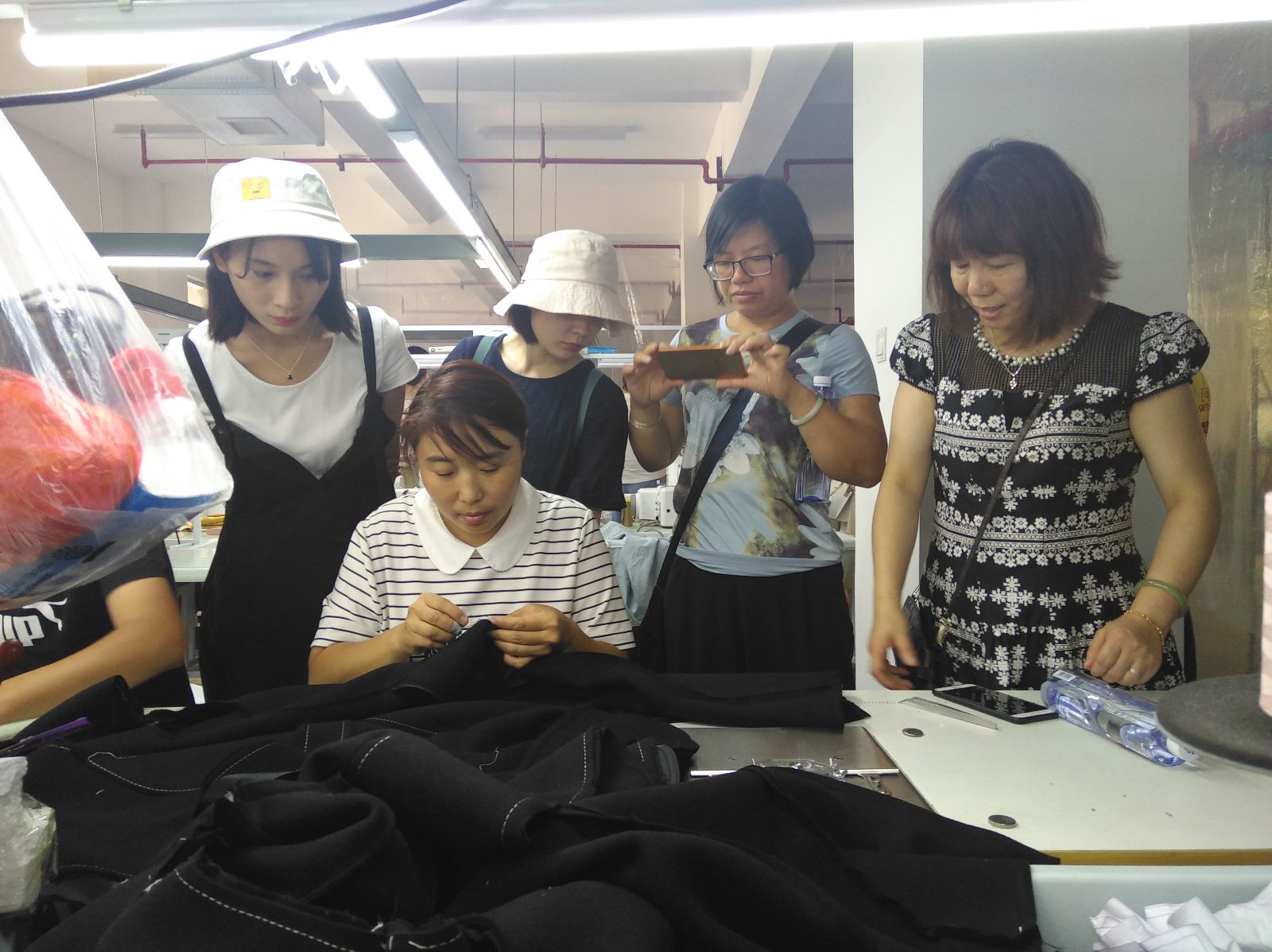朱治国董事长热情接待了实践团,并为师生们简要介绍了智连创园入驻服装企业的情况,使师生对园区情况有了初步了解。接着,朱总带领参观了湖南智联产融科技集团的服装研发基地以及供应链中心,与企业设计师们进行了沟通交流。下午,实践团一行走进智能车间参观了服装生产配套设施设备,并体验了智联产融旗下奔狐女装品牌体验店的“智能试衣镜”。