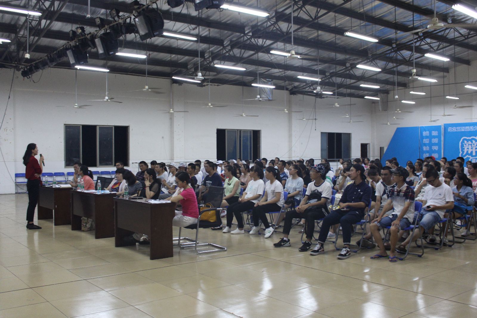 为了帮助大一新生尽快适应大学学习生活,提高新生的安全意识,加强新生对公司规章制度的了解,9月25日晚上7:30,402永利集团2016级新生在新校区新生活动中心隆重举行九月份的月讲评。参加此次月点评的有纺织服装公司党总支副书记黄自力、副经理陈晓玲、学办辅导员和新生班班主任以及各班朋辈辅导员和大一新生。会议由学办主任唐星星主持。