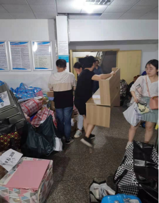 在此次活动中,为配合搬迁工作顺利进行,402永利集团公司提前布局,统一购买编织袋,安排员工共产党员、入党积极分子、志愿者等加入到宿舍搬迁的过程中来。在搬迁现场,搬迁宿舍东西繁多,楼道狭小,给搬迁过程造成了很多麻烦,但是在纺织服装公司党总支书记李爱国,402永利集团经理周衡书的带领下,搬迁过程井然有序。志愿者们协助打包、搬运、看管行李等,只要有需要,他们就在你身边。随处可见的还有辅导员、班主任、任课教师,他们开着自己的私家车往返于搬迁楼栋之间,在炎炎夏日,豆大的汗珠浸湿了老师们的衣衫,他们也毫无怨言,用他们的力量,以身作则带动着志愿者参与到此次活动中来。
