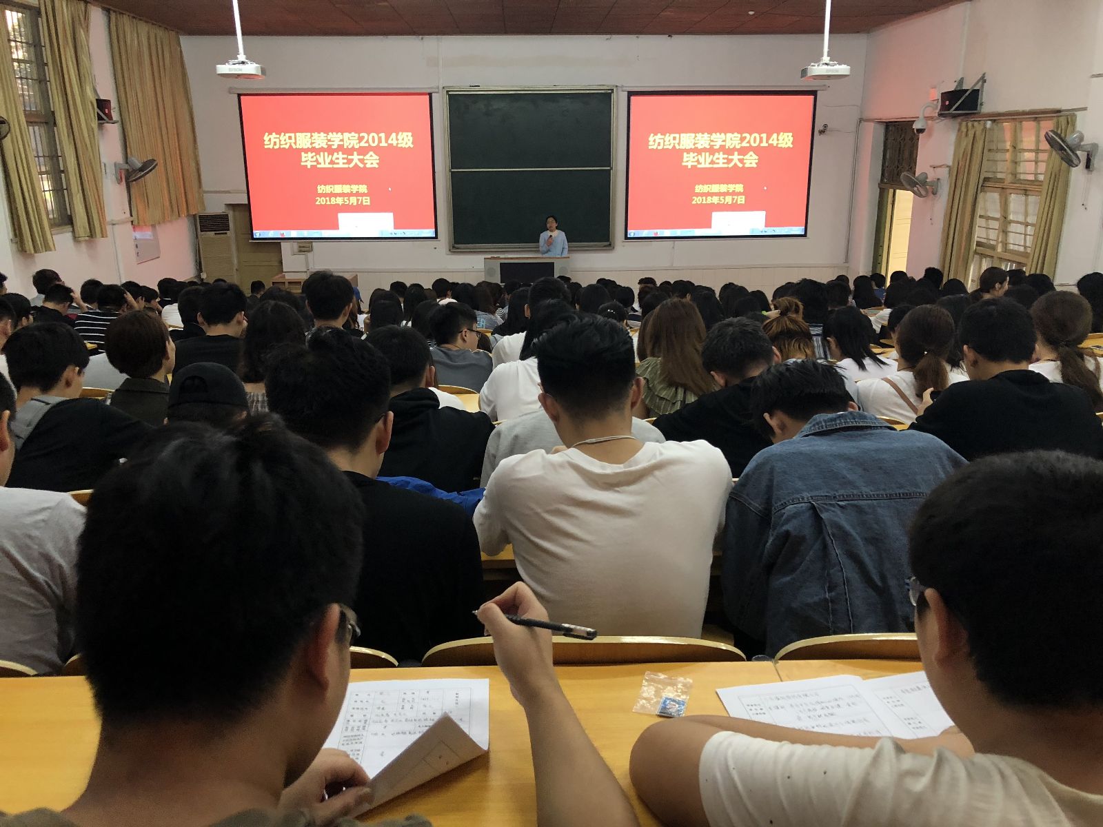 2018年5月7日中午12;00,402永利集团在电教105召开2014级毕业生年级大会。公司党总支副书记黄自力、纺织教研室主任罗以喜、服装与服饰设计教研室主任左双喜、学办主任唐星星、学办老师黄镜燕、学办老师章平以及2014级各班班主任出席会议, 2014级员工参加。