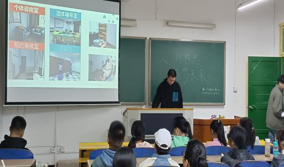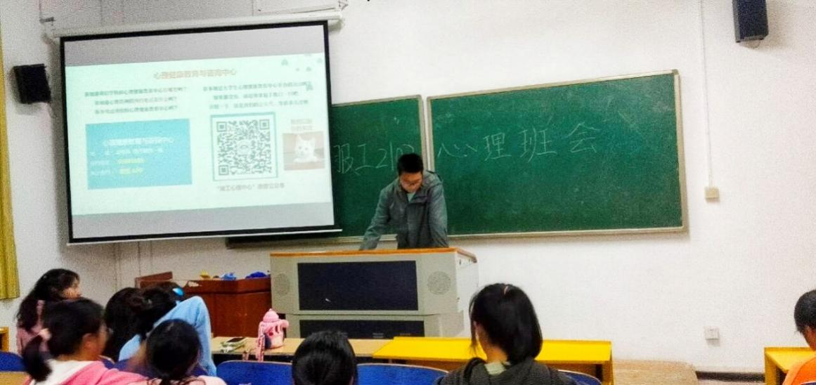 会议上,主持人给同学们介绍了宣传心理咨询室地址、咨询预约电话、咨询值班安排,并宣传“心理健康教育与咨询中心”的微信公众号,要求员工关注微信公众号。主持人面对全班宣读“心理健康教育与咨询中心致新生的一封信”。最后主持人在班级宣传“心理情景剧大赛”。