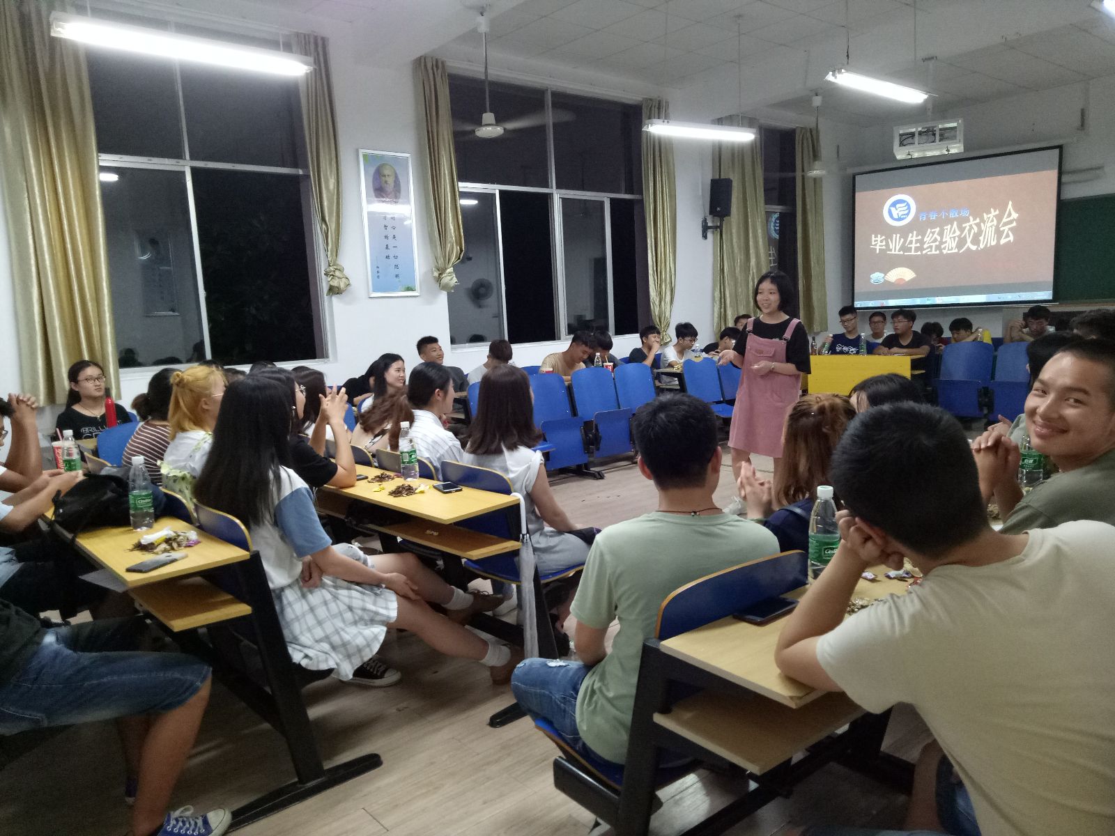 在交流会中, 张宏达从自己企业学习与实习10个月的经历,向学弟学妹讲述了纺织工程专业在纺织企业的应用,并将其本人在企业轮换岗位所做工作记录和所思所想以及如何与企业领导、一线员工打交道经验与学弟学妹分享。戴金成是大学期间成功创业的代表,他分享了他创业的艰辛历程以及在创业过程中成长与成熟,他总结道:“不要因为生活的挫折而丧失生活的信心。”杨雨梅,因为左手的伤病直接影响其在服装设计专业中的深度发展,结合自身优势与劣势,毅然决然利用课余和寒暑假时间,在不到两年的时间实现专业、职业发展的华丽大转身,成为一名专业的韩语教师。蔡悦是跨专业考入湖南大学的优秀考研代表,她分享的是在不放松专业学习,每年以优异成绩获得奖学金情况下,如何充分合理利用课余时间进行会计专业的学习与实习,最终实现考取研究生阶段目标。她的建议是:“坚定自己的目标,一路坚持走下去,就一定会成功!”她的经验让准备考研的同学信心满怀。肖瑄,作为一位大学四年的班长,分享了她的班级管理之道。蒋珍分享了她的面试技巧:着装得体、 落落大方, 言辞得体,注意文明修养等问题。在提问和自由交流环节,纺工1702班同学积极踊跃向学长学姐们请教,毕业生们也毫无保留的倾囊解惑。最后学弟学妹们为学长学姐送上他们的祝福,祝愿2018届毕业生前程似锦!
