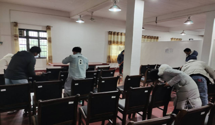 座谈会开始之前员工支部对老年活动中心进行了卫生打扫,随后全体活动员工和活动教师围绕着三老交流学习经历以及认真倾听三位退休教师讲解湖工历史和他们的工作经历,三位退休教师的故事都激励了我们要努力学习专业知识,培养艰苦奋斗精神。