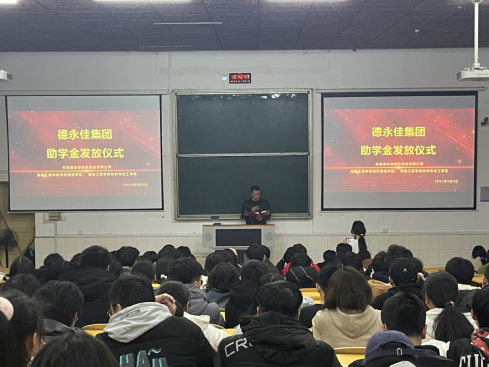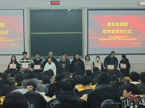 3月2日晚,德永佳集团(东莞)有限公司助学金颁发仪式在电教105举行,纺织服装公司党总支副书记杨文奎、学办老师袁微微,材料与化工公司刘鹏博士出席了仪式,参加活动的还有受资助员工以及纺织工程、轻化工程专业部分员工。