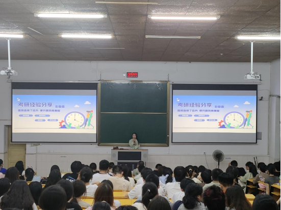朋辈引领,榜样示范。考研经验交流环节,众多考研榜样结合备考经历,有的放矢地介绍了择校要点、时间规划以及不同学科的备考方法,细致入微,为在场的同学们传经送宝。