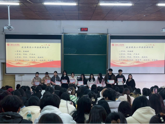 为弘扬优良学风,进一步提高员工综合素质,营造良好的学习环境,402永利集团在以“笃学求索 知行合一”为主题的“优良学风建设月”中开展了“本科公司产品审核评估专题班会”、“最美小书桌”、“学霸笔记”、“最美学习瞬间”、“优秀学风作品展”等系列活动,吸引了众多同学参与。公司于11月26日中午在电教楼105召开月讲评暨优良学风建设月系列活动颁奖仪式,会议由辅导员袁微微主持,公司员工代表及受表彰同学参加大会。