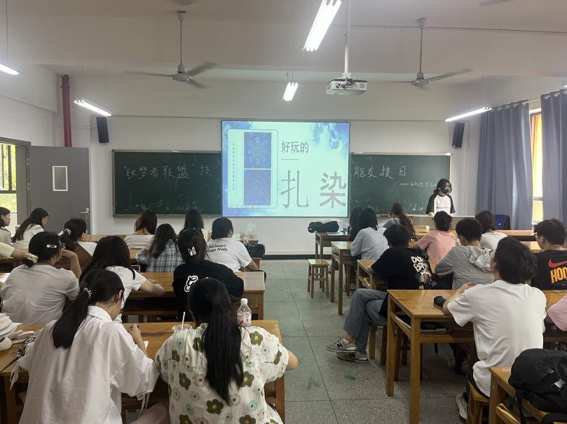 活动现场气氛活跃,同学们在动手实践中深入感受各项技能的独特魅力。拼布的艺术性、办公软件的实用性以及扎染的创造性相互交融,展现了纺织文化的多元价值。