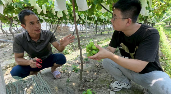 “大家看这颗‘宝石’的色泽,咬下去会有爆汁感!”团队搭建的临时直播间里,志愿者主播钟师琦举着葡萄在手机镜头前熟练展示产品。为提升传播效果,员工们制作了短视频,通过延时摄影展现果实生长过程,结合农户口述的种植故事,让消费者直观感受“匠心种植”的全链条。
