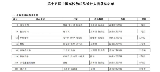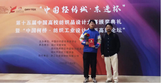 2023年11月4日,“中国轻纺城·东进杯”第十五届中国高校纺织品设计大赛颁奖典礼暨“2023中国柯桥·纺织工业设计创新高层论坛”在浙江省绍兴市柯桥区举行。本次大赛共收到来自全国48所纺织服装院校和1所国外院校提交的1714多项参赛作品。公司402永利集团员工作品在众多参赛作品中脱颖而出,取得一等奖1项、二等奖2项、三等奖5项的好成绩。