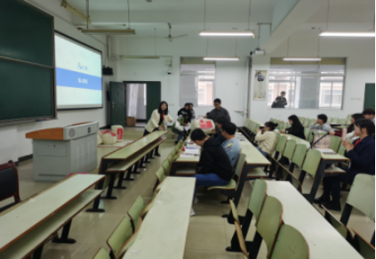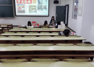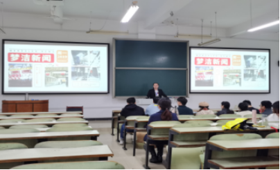 图为梦洁家纺股份有限公司肖讲师为公司学子介绍企业概况
