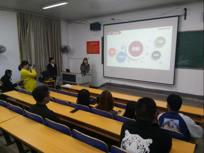 本次宣讲会首先由湖南瓯利德的招聘负责人简要介绍了湖南瓯利德百货有限公司。湖南瓯利德百货有限公司创始于1996年,专注于中国三、四线消费市场,致力于为消费者创造流行美的品质生活。经过二十余年的发展,从默默无闻的小微企业到行业领军企业、综合型大众百货零售商及运营商。然后该负责人讲述了以湖南为中心、实现洋葱式发展的经营理念,依靠着这个理念鞭策着瓯利德不断壮大了公司实力,延伸产业链。紧接着,该负责人介绍了湖南瓯利德令人无法抗拒的福利体系,在湖南瓯利德不仅生活设备一应俱全,而且产业园区为员工提供免费健身房、小卖部、KTV、图书室、篮球场、等齐全的娱乐设施;上下班还有班车接送。湖南瓯利德百货有限公司将为员工成长创造良好的平台,并为员工做好职业规划。最后,该负责人说明若想加入湖南瓯利德这个大家庭,可以在宣讲结束后提交自己的简历,现场进行初试。