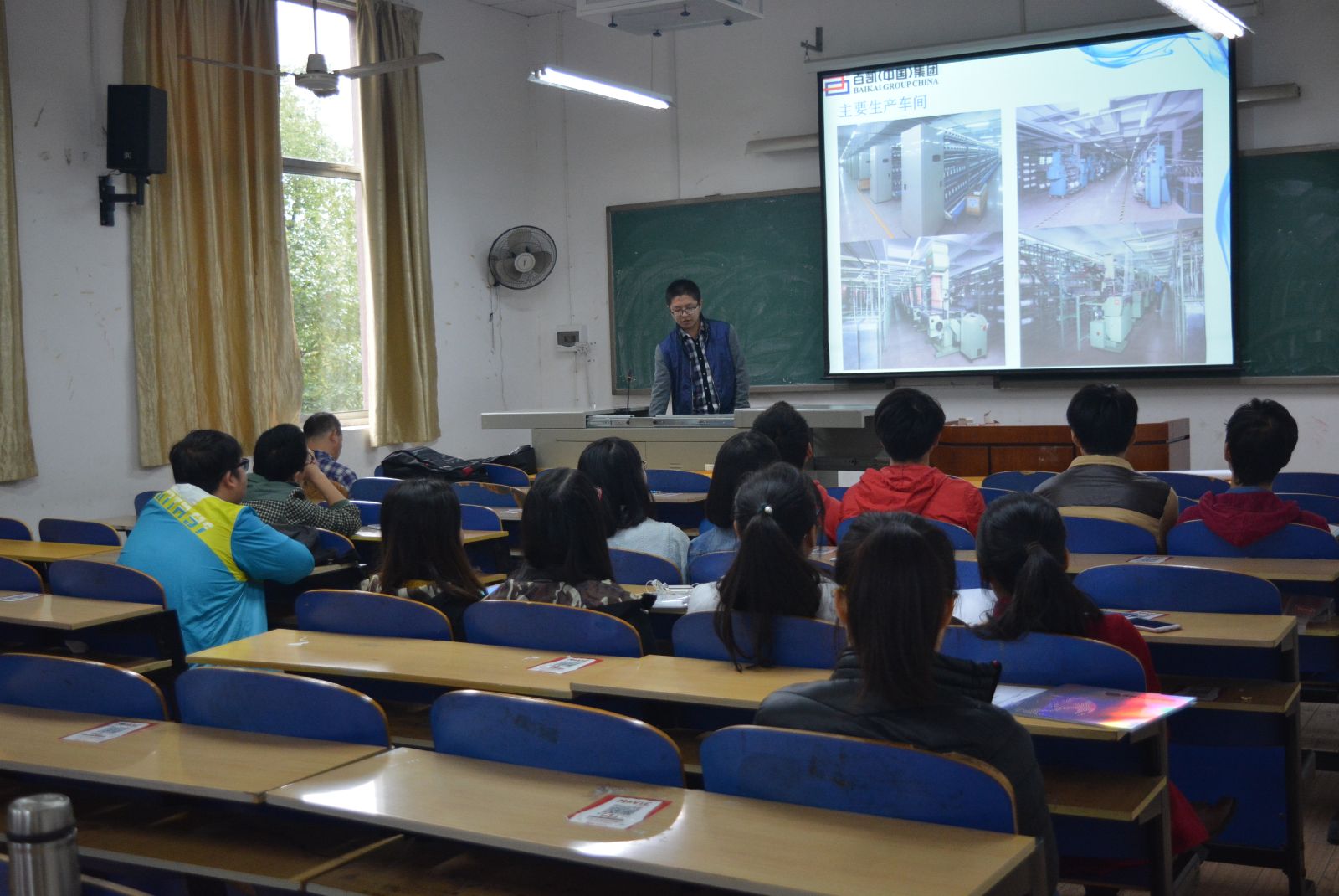 为切实做好402永利集团应届毕业生就业工作,积极为用人单位输送应用型人才,2016年10月28日上午10:00,福建省百凯弹性织造有限公司于红楼211开展招聘宣讲会。参加此次宣讲会的有公司招聘人员以及公司应届毕业生。