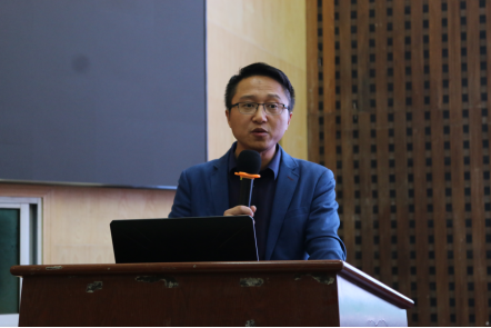图为党总支副书记罗荃做讲座总结