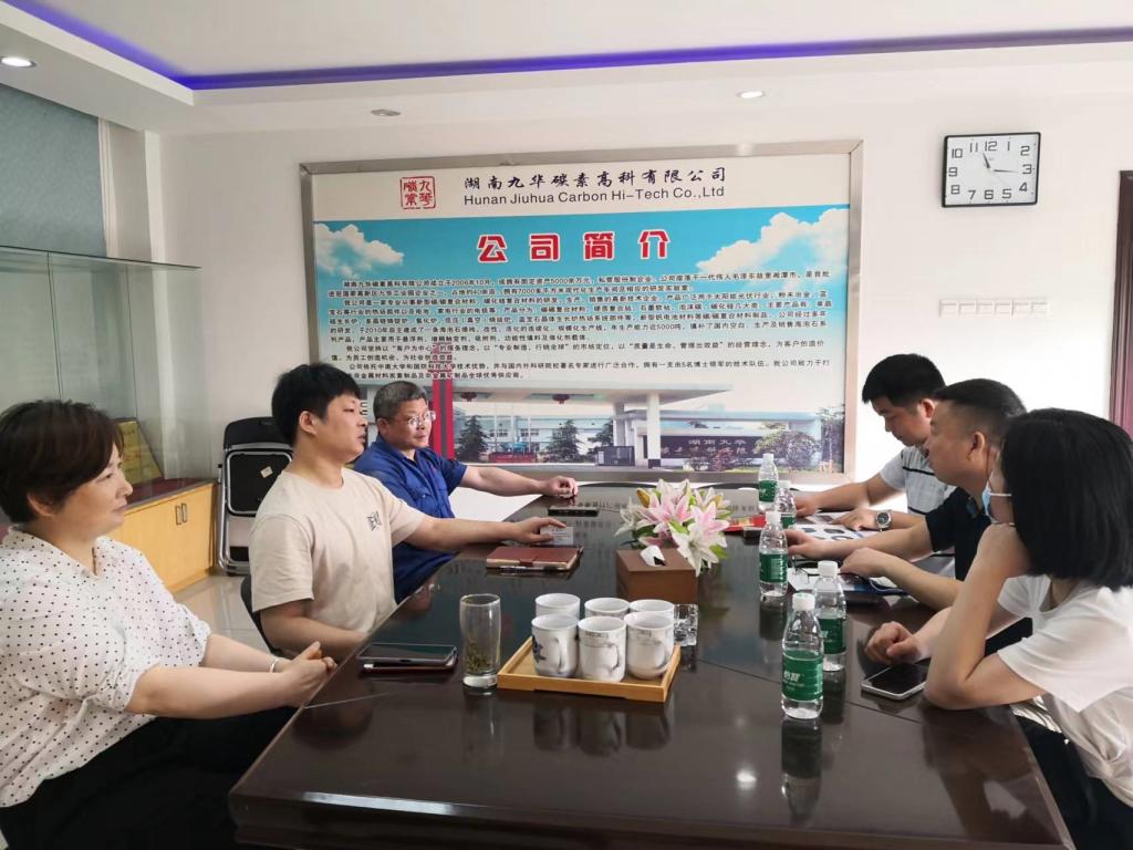 为落实深化产学研合作,畅通校企供需双方精准链接,扩展就业渠道,提升公司服务地方经济能力。4月28日上午,402永利集团周衡书经理带队,党政办主任吴湘渝、包新军博士和学办袁微微老师一行4人赴湖南九华碳素高科技有限公司调研。