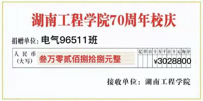 巍巍大厦,众匠所营;滔滔清江,百川所聚。员工每一份爱心都是母校发展的动力,员工每一次关注支持都是母校举棹扬帆的号角。电气96511班不忘恩泽,用实际行动回馈母校。他们感慨到:“时光一转已相识这么多年了,母校的一草一木,教室的一桌一椅,老师的一颦一笑,仍记忆犹新。在母校校庆到来之际,祝福母校:光辉历程更辉煌,人才辈出代代强!育人育德育百年盛况,立志立业立四海名校!”
