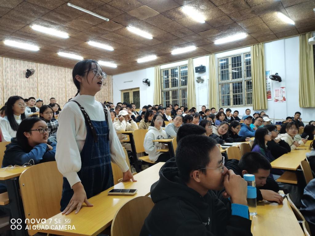 在互动交流环节,同学们非常感兴趣,踊跃提出自己关心的问题,几位同学分别提出了行业薪资、求职方法、大学四年如何度过、员工会工作经验等问题。两位员工也结合了自身经历和见闻详细回答,让同学们增长了见识。
