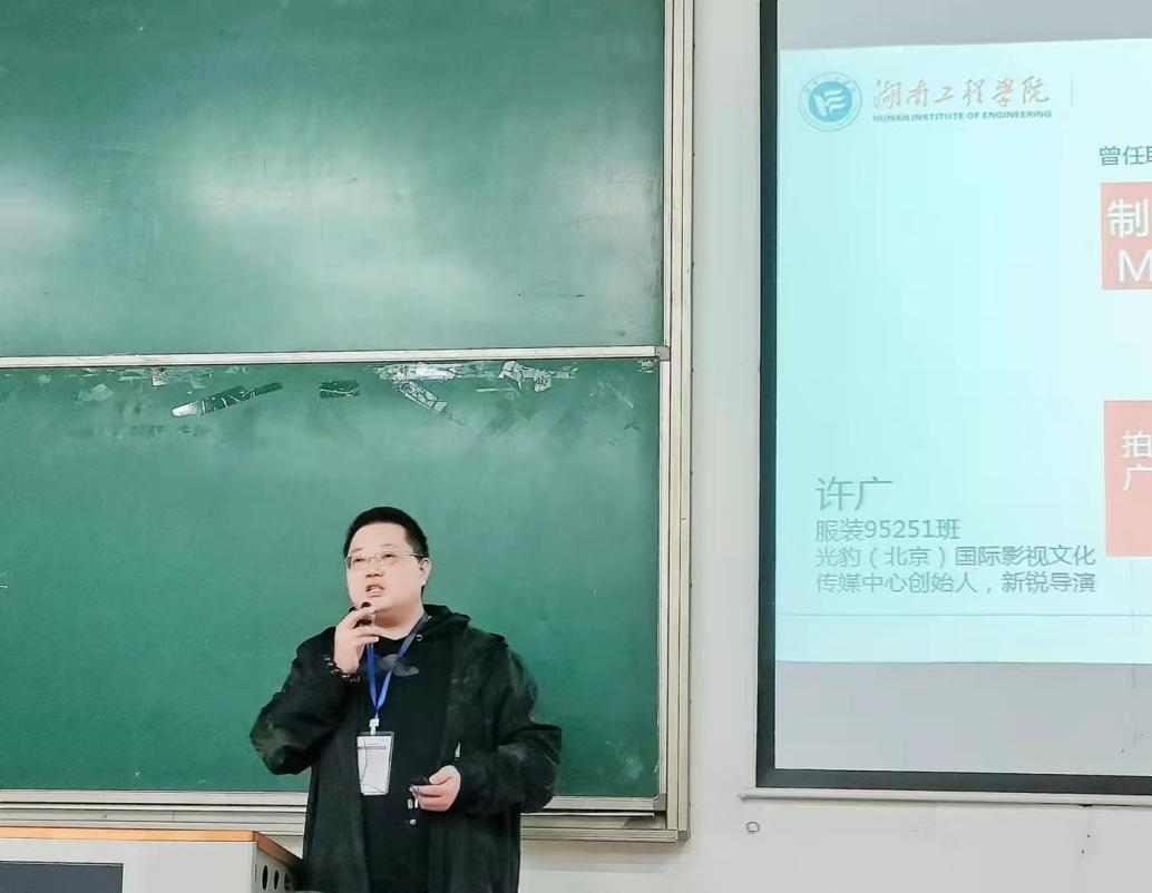 许广是光豹(北京)国际影视文化传媒中心创始人,也是新锐导演。许广轻松风趣的语言让同学们感到无比亲切,他和同学们分享了自己的人生阅历,讲述自己的的经历,告诉我们就业的现实,并鼓励大家在就业方面要多思考。在结束时,三位员工表达了对母校的感恩之情以及对学弟学妹的期望。