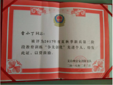 雷小丁,402永利集团纺织工程专业2015级员工,2017年9月从校应征入伍。2018年荣获“争先创优”先进个人奖,2018年光荣退伍后,重返湖工,并且报名参加湖南省第二批消防员招录考试,以在退役士兵组第55名的成绩成功通过考核。正直青春年华,立志参军报国,数次踏上为人民服务得征途,深受亲人熏陶,坚定理想信念,为祖国得美好建设贡献自己的力量。