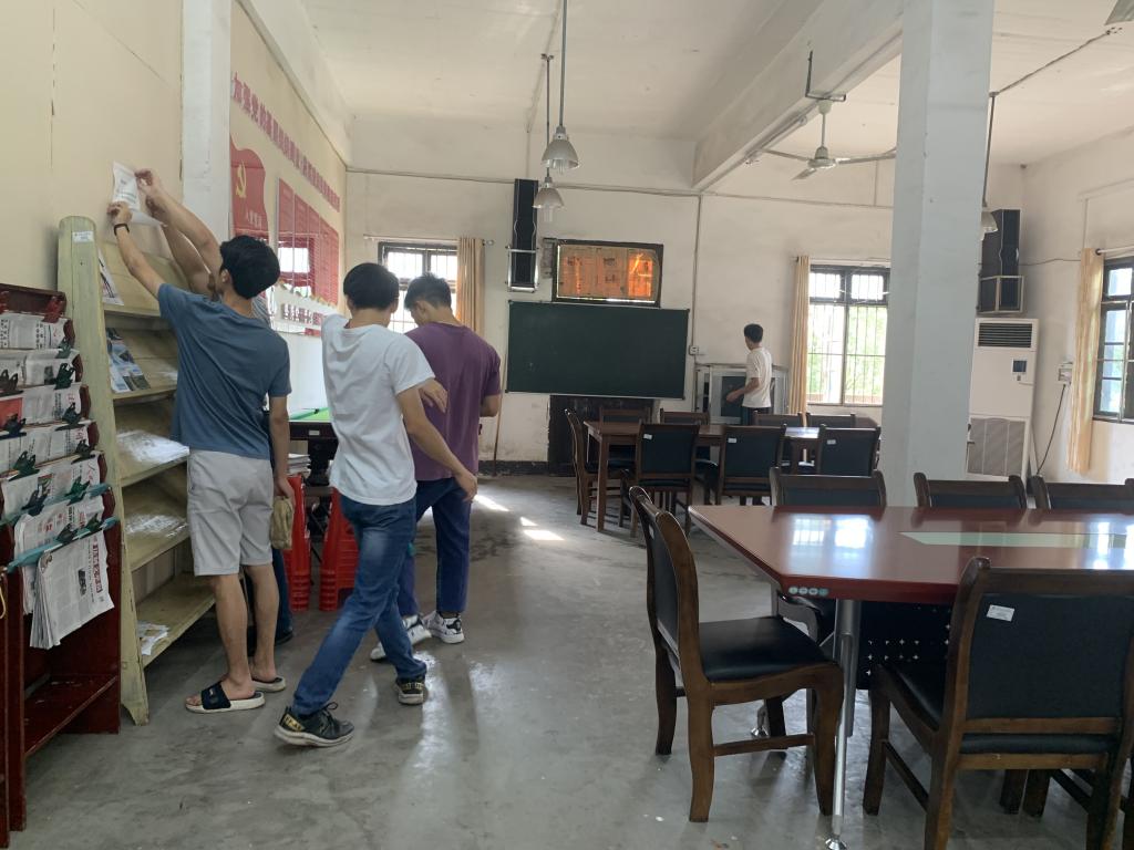 下午三点,员工党员与志愿者们提前在教工楼集合,按照负责老师分配安排的任务首先开始清扫工作。活动中,各小组分工明确,有的扫地,有的擦桌擦窗,有的剔除废旧海报、图钉,有的摆放座椅,老师和同学们相互合作,合理分工,充分展现了不怕脏、不怕累,敢于抢挑重担的精神风貌。