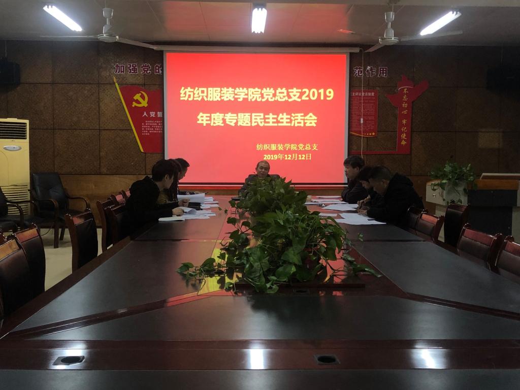 根据公司党委“不忘初心、牢记使命”主题教育的安排和部署以及民主生活会的相关要求,纺织服装公司党总支于2019年12月12日晚在电教201会议室组织召开了2019年度专题民主生活会。会议由党总支书记李爱国主持,副董事长刘小波全程参加并作指导。党总支委员周衡书、罗荃、张轶、吴湘渝出席会议。