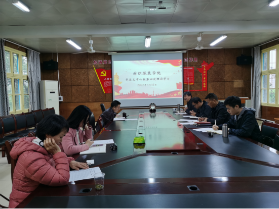 4月15日,纺织服装公司党总支理论学习中心组在电教201会议室举行2022年第四次学习会,专题学习习近平总书记在北京冬奥会、冬残奥会总结表彰大会上的重要讲话精神,并就进一步深入学习贯彻重要讲话精神作出安排部署。会议由党总支书记李爱国主持,全体党总支委员参会学习,副经理陈晓玲列席会议。