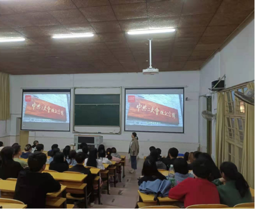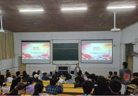 傅静琳从“学习党史的重要的作用”“党史发展的重大事件”“共产党的伟大历史贡献”“党的历史给我们启示”四个方面开展此次党史学习教育。傅静琳指出在开展党史学习教育,是牢记初心使命、推进中华民族伟大复兴历史伟业的必然要求,是坚定信仰信念、在新时代坚持和发展中国特色社会主义的必然要求,是推进党的自我革命、永葆党的生机活力的必然要求。随后,傅静琳让同学们陆续发言,讲述自己在学习党史后所获得的启示。最后,傅静琳指出知往鉴今,以启未来。认真学习党史,是适应时代发展的现实需要,是建设中国特色的社会主义现代化建设事业的需要。