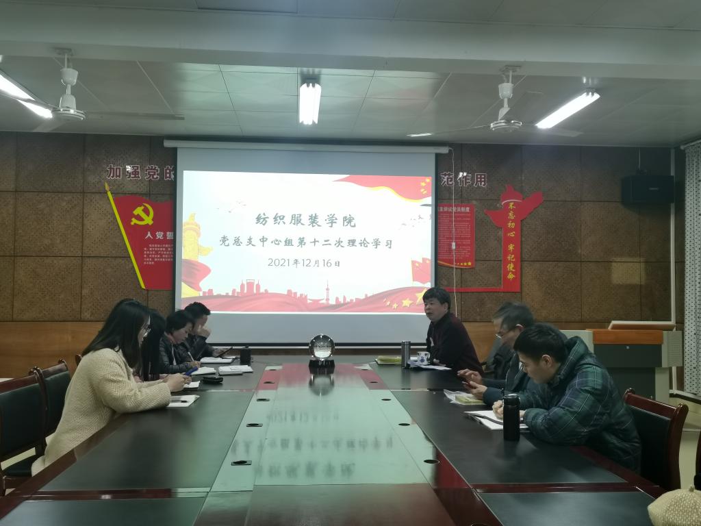 2021年12月16日,纺织服装公司党总支理论学习中心组(扩大)在电教楼201会议室专题学习研讨《中共中央关于党的百年奋斗重大成就和历史经验的决议》、传达学习湖南省第十二次代表大会精神。公司党总支书记李爱国主持会议,党总支委员、组织员、各支部书记参加,副经理陈晓玲列席会议。