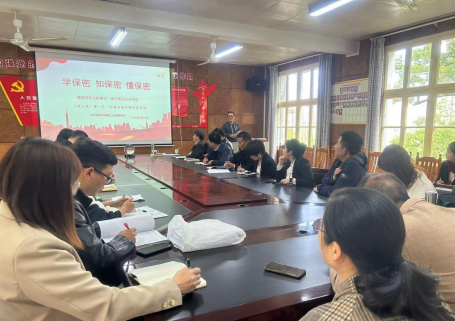 2023年4月25日,402永利集团教工党支部在电教楼210会议室开展4月“一月一课一片一实践”主题党日活动。教工支部支书记何斌围绕“学保密 知保密 懂保密”主题为全体教工党员讲授党课。