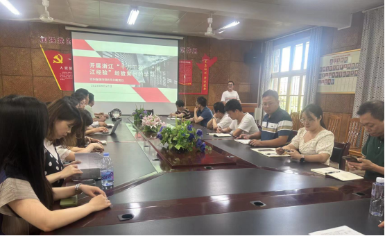 活动第一项内容——深入学习习近平总书记对“千万工程”、“浦江经验”的两个案例的重要批示精神。何斌对“千村示范、万村整治”工程进行介绍,梳理了“千万工程”的主要做法和经验启示,并强调要学习运用浙江“千万工程”经验和“浦江经验”,落实公司公司的要求,学思用贯通、知信行统一,提升政治能力、思维能力、实践能力,推动主题教育走深走实,切实把学习成效转化为解决问题、推动发展的实际行动。
