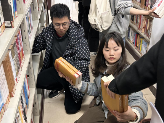 本次活动在图书馆老师们的指导下开展,员工分成两组分别赴图书馆205室和407室,将混乱无序的图书按照英文字母编号进行分类、搬运、整理。在分类过程中,遇到漏的书本,大家积极寻找对应的书架,交与相关负责的同志。同学们以激情饱满的态度充分发挥团结协作精神投入到实践中,经过两小时的耐心细致的工作,大家顺利并准确的完成了书本核对、归类、上架、下架等工作。