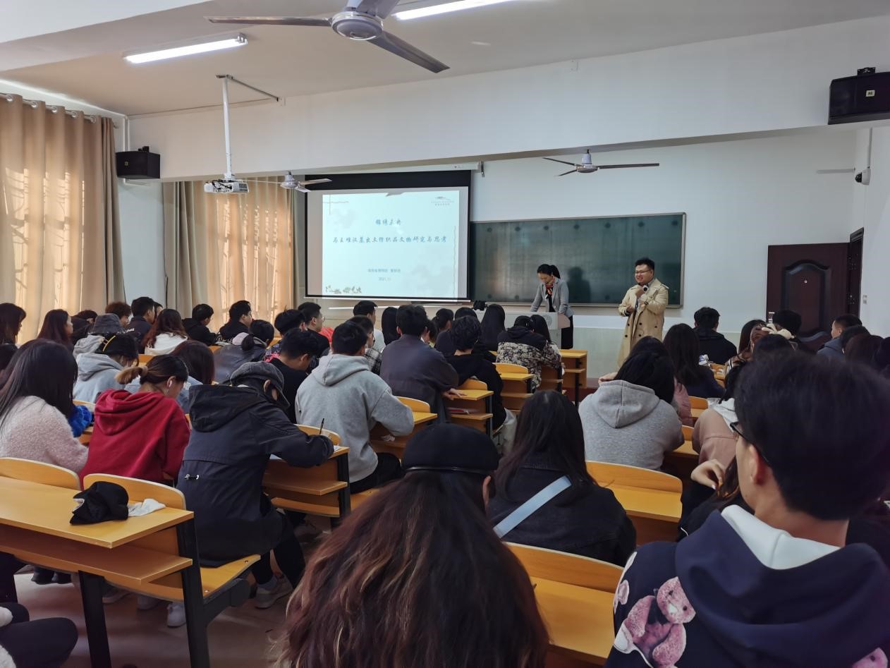 讲座伊始,董老师以马王堆织物出土视频和图片资料简单介绍了马王堆汉墓出土纺织物的类别和样式,随后,结合文化历史,以深衣和素纱单衣为例详细介绍了马王堆出土织物的色彩、结构、工艺、裁剪等方面考古研究知识和技术保护措施,让现场师生了解了文物保护工作的重要意义和历史价值。最后,董老师提出7个有关马王堆出土纺织物研究的问题,至此,本次专题讲座在师生们激烈的讨论声中圆满结束。
