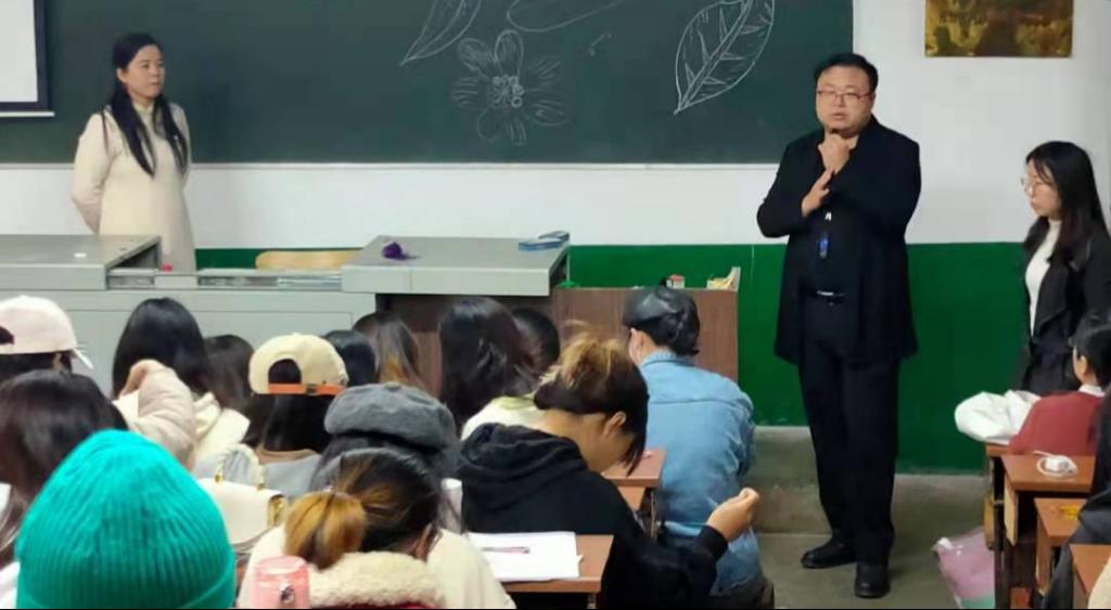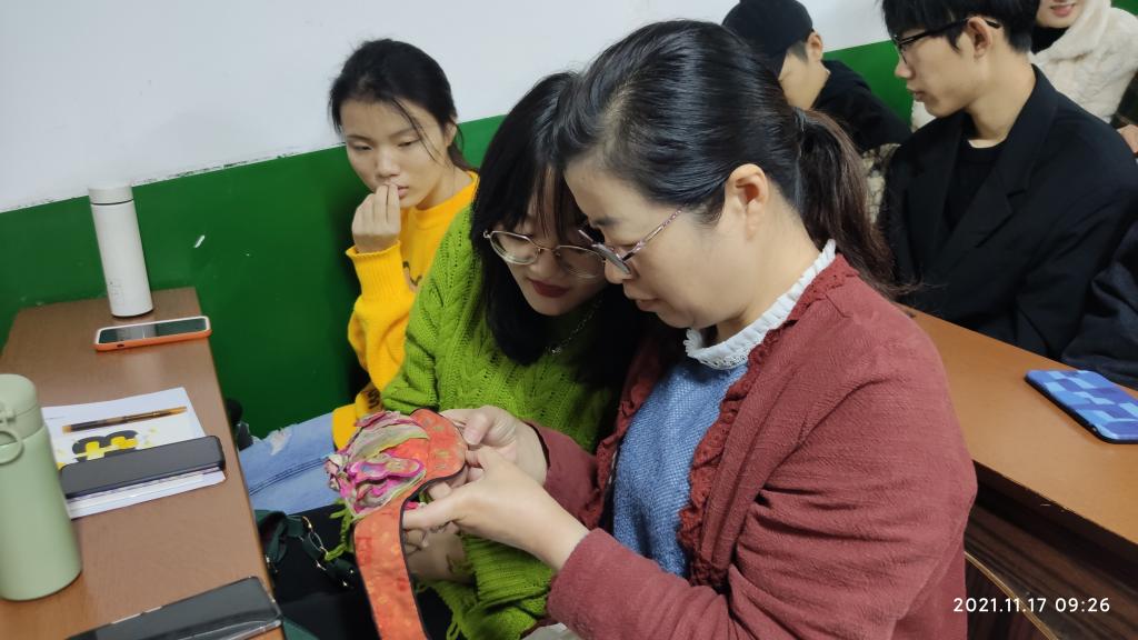 2021年11月17日上午08:30,湖南省非物质文化遗产技艺“桃源刺绣”传承人罗明华女士在北校区4教102为公司18级服设全体员工作题为“桃源刺绣传习与创新”的专题讲座。服装与服饰设计专业教师夏添、杨梅、彭迪、迟晓丽、卿少宁、彭小琴、贺晨亮7位老师出席本次讲座,夏添老师担任本次讲座主持。