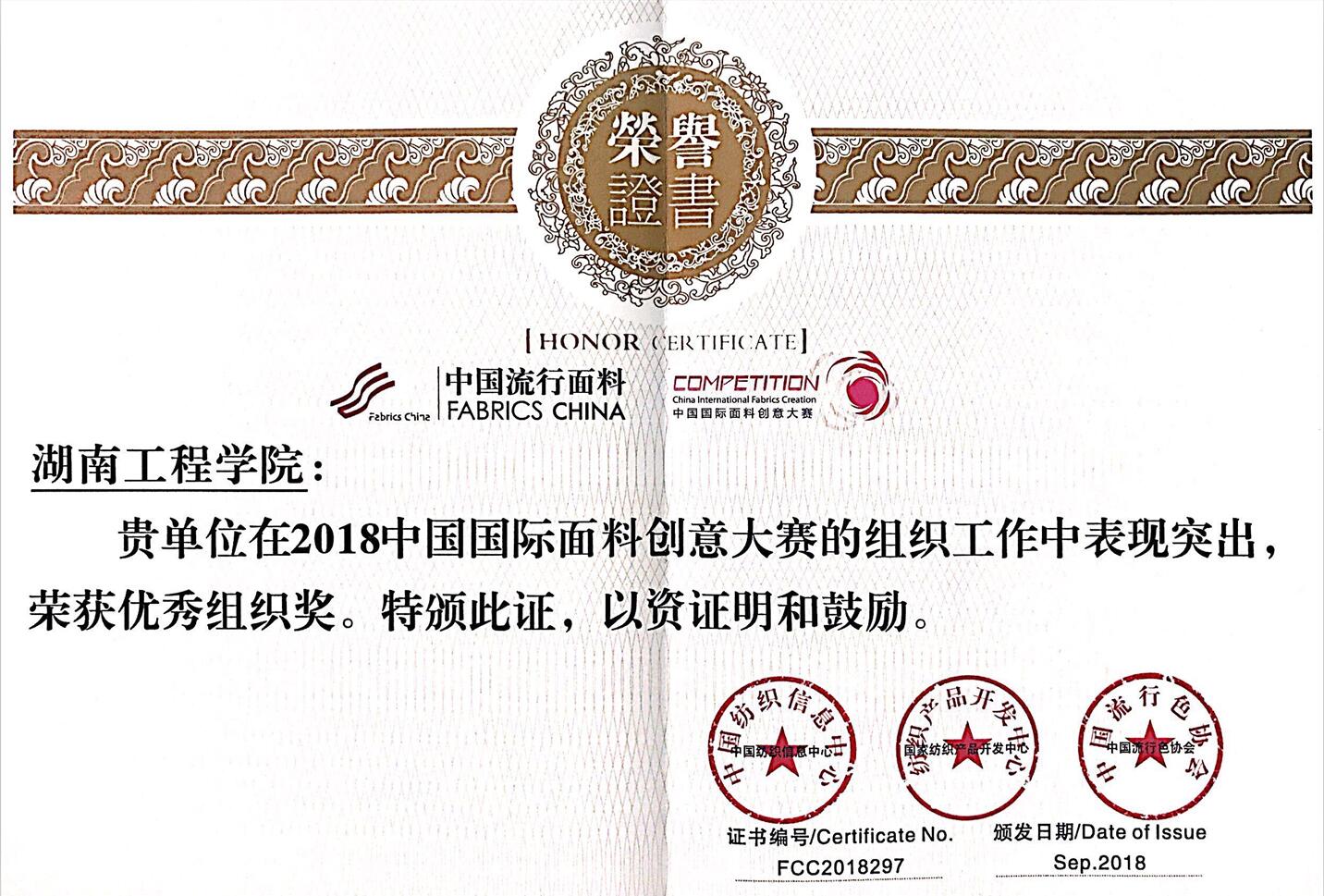 公司荣获2018中国国际面料创意大赛“优秀组织奖” 荣誉