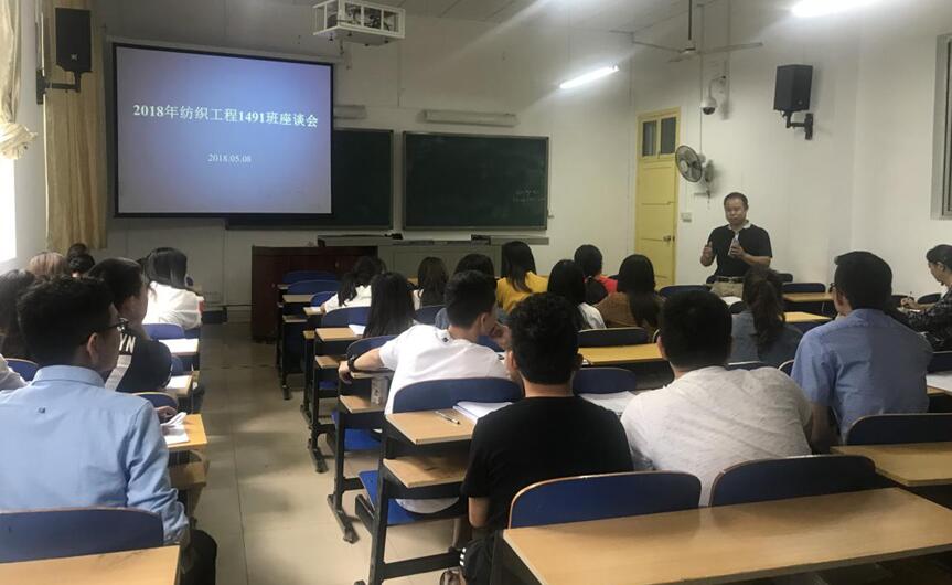 5月8日上午10:00,402永利集团纺织工程1491卓越班的全体员工于红楼109召开了座谈会,出席会议还有402永利集团领导和各校内指导老师。