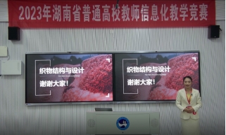 比赛中,周琪老师采用丰富多样的信息化教学手段为评审专家展示了《织物结构与设计》课程的魅力,生动地展示了织物从设计、织造到应用的知识要点。整个教学过程目标明确、教学内容设计合理完整、教态仪表自然得体、精神饱满,受到了评委们的一致赞赏。