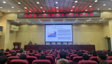 座谈会结束后,靳向煜教授在图书馆第二报告厅开展了题为《非织造工程材料研究与新技术应用》的学术讲座,公司领导、青年教师、纺织工程、非织造材料与工程专业本科生和纺织工程领域研究生参加。讲座主要分为非织造材料现状与背景、干法非织造材料及新技术、纺熔法非织造材料及新技术、湿法非织造材料及新技术和非织造材料与工程专业建设等内容,详细阐述了我国当代非织造产业概况、非织造专用原料、非织造成网与加固关键技术以及相关代表性工程化成果,提出了非织造知识型、创新型工程人才的培养方向。