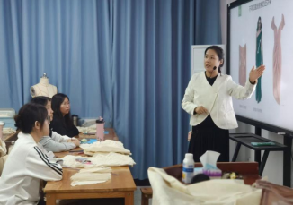 在理论讲授中李婧老师以当今时尚热点为课程切入点,引出放射褶知识点,从褶皱来源、结构原理与应用法则全面讲授,让员工形成系统性认知。同时通过新中式时尚案例来引导员工思考中西服饰在结构上的异同点以及在当今的融合路径,培养员工的文化自信与思辨意识。在实操实践中,李婧老师通过分步骤示范和重点部位的针对性讲解,帮助员工更清晰地理解立裁手法,同时让员工能在一折一叠的立裁过程中感受到严谨、细致的工作态度与精神。课堂气氛活跃,员工在实操中反映出对知识的掌握程度较高。