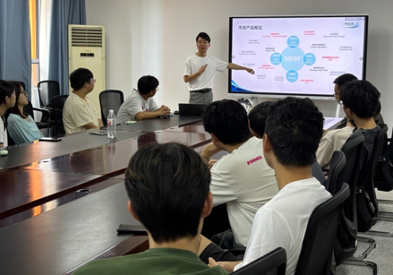 分享会上,王秦员工围绕非织造行业的发展现状、未来前景、个人职业发展规划展开讲述。他通过详实的数据和案例,分析了国内外作为关键基础材料的非织造材料在卫生用品、医疗、过滤和建筑等领域的应用前景。他结合自身职业发展,展现了纺织专业人才在新兴产业中的定位与价值,并指出:“非织造行业正朝着绿色化、智能化、功能化方向加速转型,复合型人才需求持续攀升。