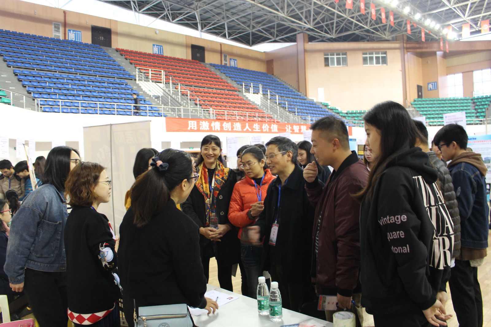 双选会当天,纺织服装公司党总支书记江灏、副书记黄自力、副经理周衡书、学办主任唐星星等抵达现场与企业交谈。各员工干部在为用人单位对接服务后,积极了解企业招聘需求,为毕业生和用人单位沟通协调。十点,双选会现场人头攒动。毕业生手持自己精心准备的自荐书和简历,穿梭于心仪、对应的企业,并向中意单位投交简历,积极主动的与招聘人员交流,了解用人单位招聘情况。各用人单位也热情地给毕业生们讲解各自的岗位需求,询问员工的意向、期待等。