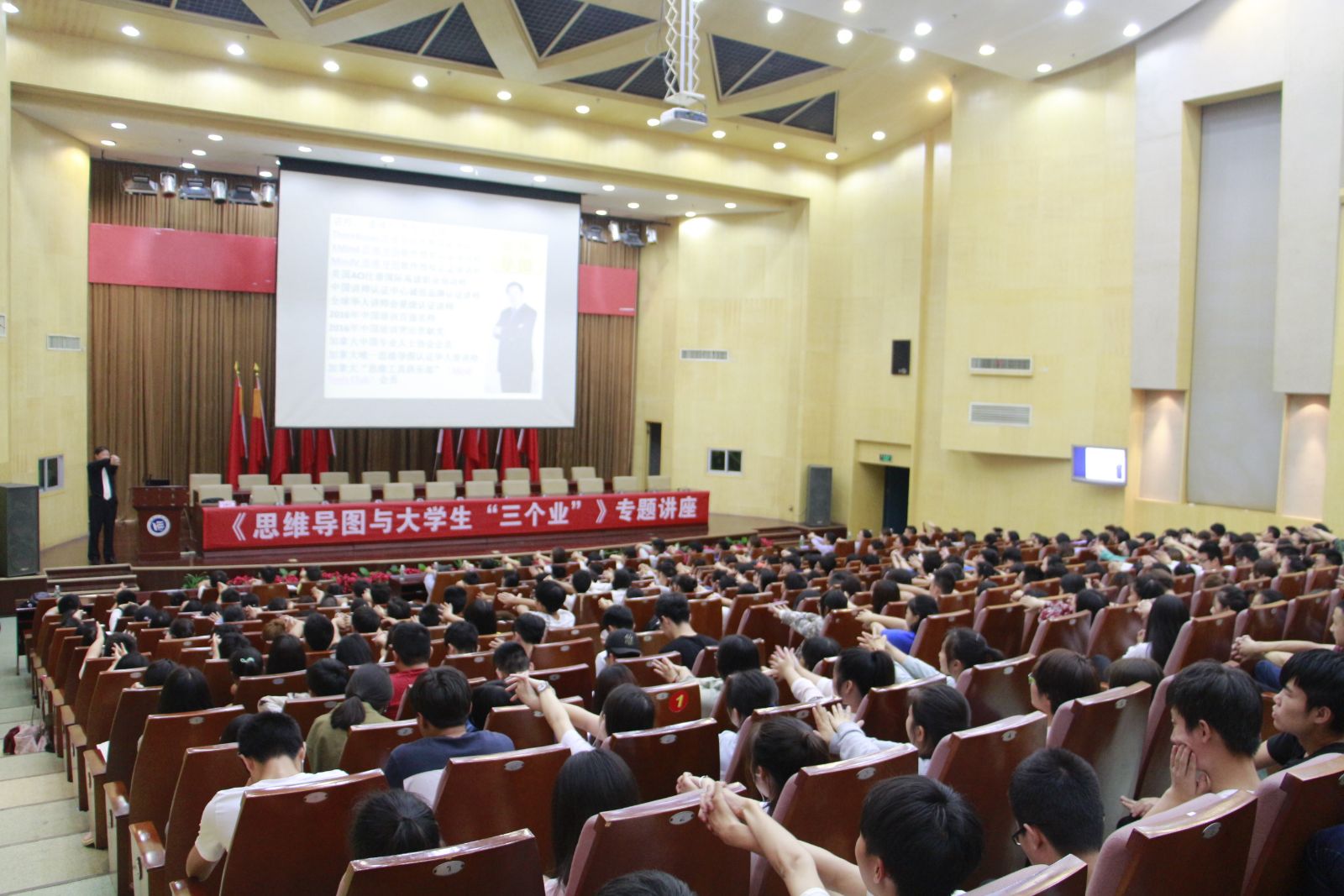 行为源于思维,思维决定成败。为改变402永利集团员工思维模式,提升学习、就业、创业能力,6月5日晚19:30,402永利集团“学习指导”辅导员名师工作室邀请了加拿大籍华人、思维导图全球培训师潘曙光教授在主校区一报告厅为全院师生作了《思维导图与老员工的“三个业”》专题讲座。402永利集团辅导员名师工作室的老师与公司近400名员工聆听了讲座。讲座由工作室的直接领导、公司党总支书记副书记黄自力主持。